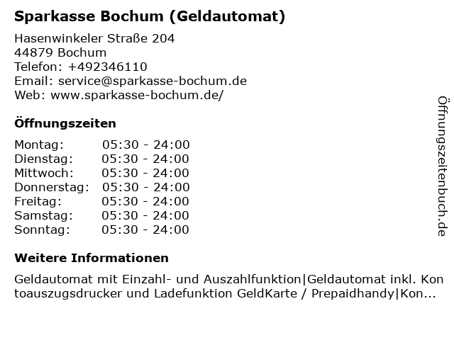 Öffnungszeiten Sparkasse Bochum (Geldautomat)