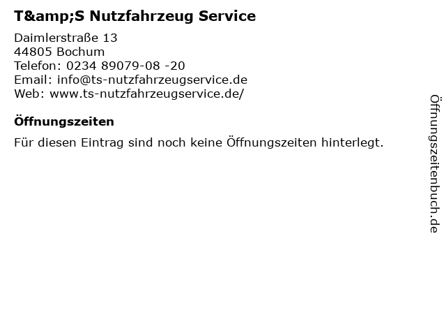 | Öffnungszeiten T&S Nutzfahrzeug Service in Bochum anzeigen | |