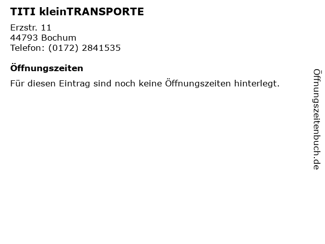 | Öffnungszeiten TITI kleinTRANSPORTE in Bochum anzeigen | |