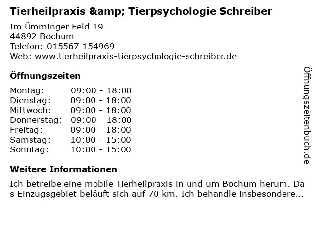 | Samstag | 10:00-15:00 |