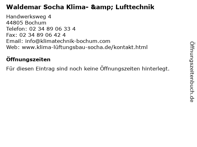 | Waldemar Socha Klima- & Lufttechnik anrufen | |