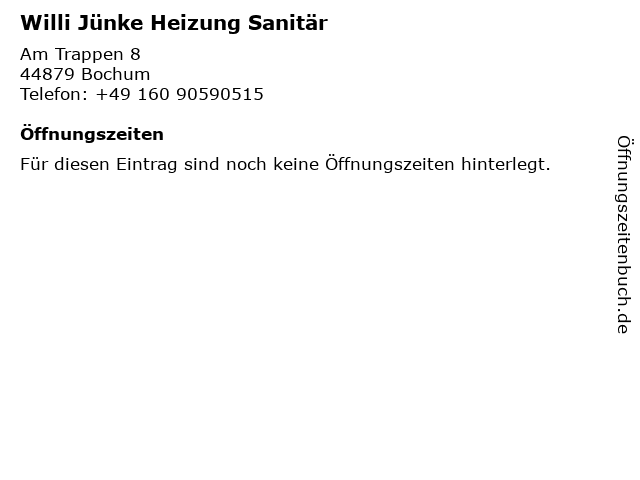 | Öffnungszeiten Willi Jünke Heizung Sanitär in Bochum anzeigen | |