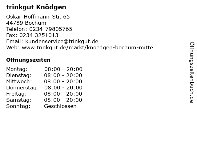 | Öffnungszeiten trinkgut Knödgen in Bochum anzeigen | |