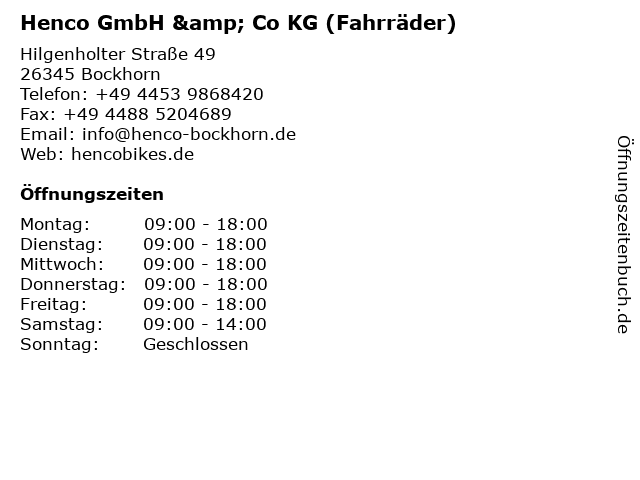 Branchen & Suchbegriffe zu Henco GmbH & Co KG (Fahrräder):co, e-bikes, fahrradgeschäft, fahrradladen, fahrräder, henco, zubehör |