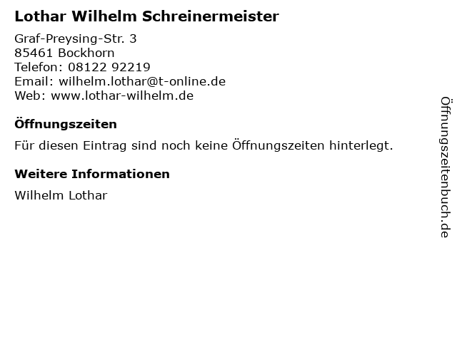 | Lothar Wilhelm Schreinermeister anrufen | |