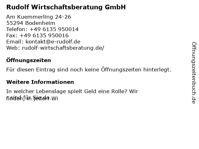 | Rudolf Wirtschaftsberatung GmbH anrufen | |