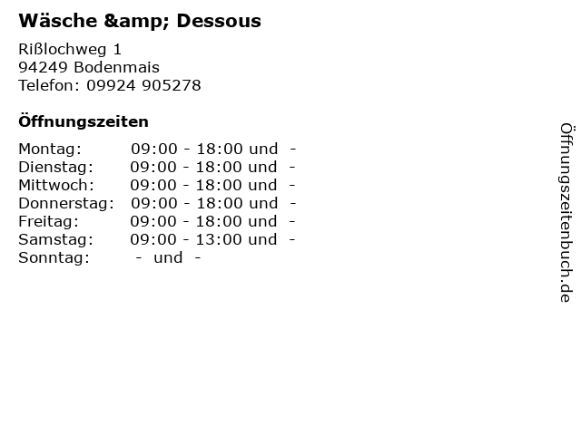 | Öffnungszeiten Wäsche & Dessous in Bodenmais anzeigen | |