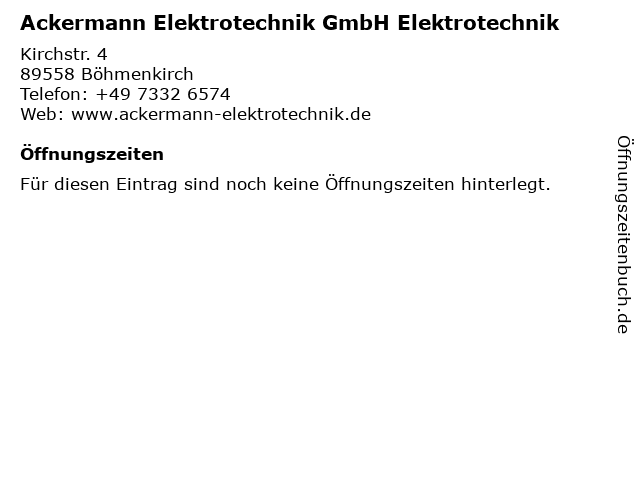 | Ackermann Elektrotechnik GmbH Elektrotechnik anrufen | |