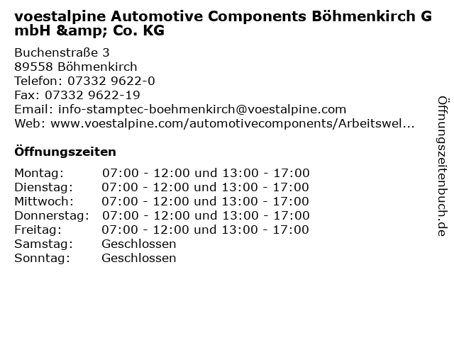Branchen & Suchbegriffe zu voestalpine Automotive Components Böhmenkirch GmbH & Co. KG:automotive, böhmenkirch, co, components, dancke, hersteller, stamptec, stanztechnik, stanzteile, voestalpine |