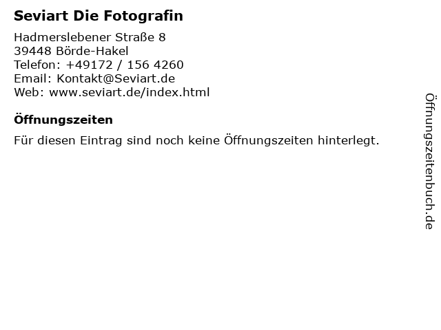 | Öffnungszeiten Seviart Die Fotografin in Börde-Hakel anzeigen | |