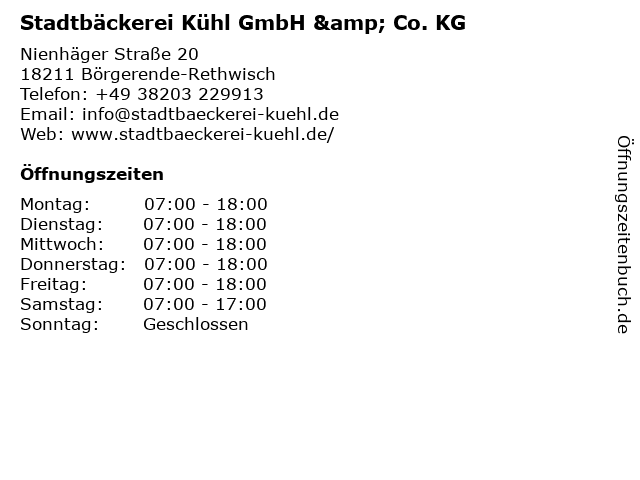 Stadtbäckerei Kühl GmbH & Co. KG in Börgerende-Rethwisch: Telefonnummer, Öffnungszeiten und Adresse