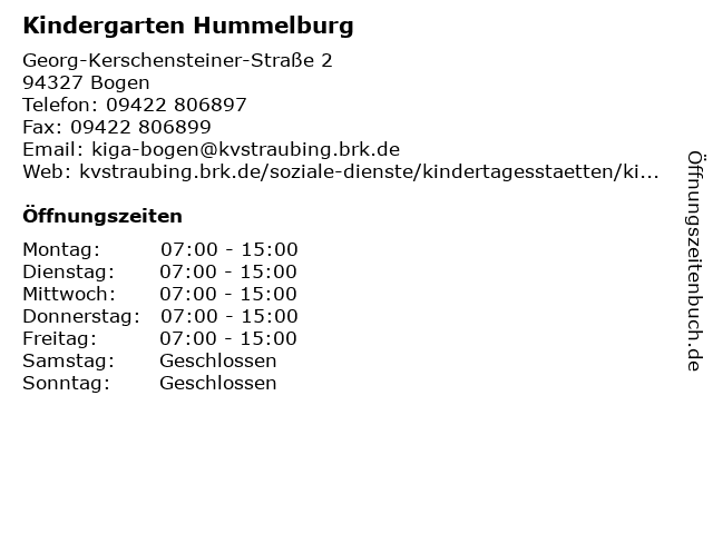 | Öffnungszeiten Kindergarten Hummelburg in Bogen anzeigen | |