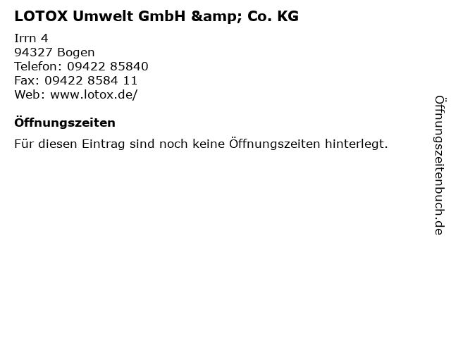 | Öffnungszeiten LOTOX Umwelt GmbH & Co. KG in Bogen anzeigen | |