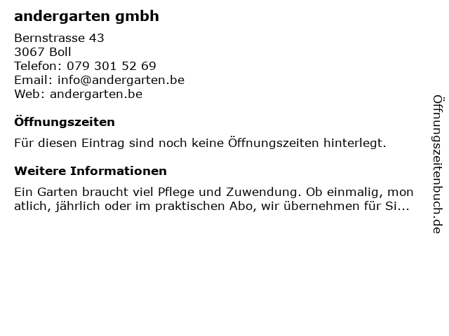 | Öffnungszeiten andergarten gmbh in Boll anzeigen | |