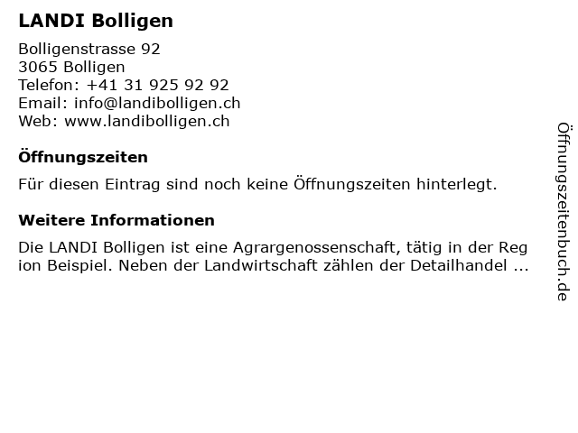 | Öffnungszeiten LANDI Bolligen in Bolligen anzeigen | |