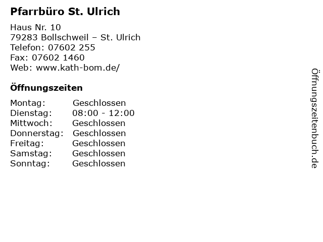 Branchen & Suchbegriffe zu Pfarrbüro St. Ulrich:kirchengemeinde, pfarramt, pfarrbüro, ulrich |