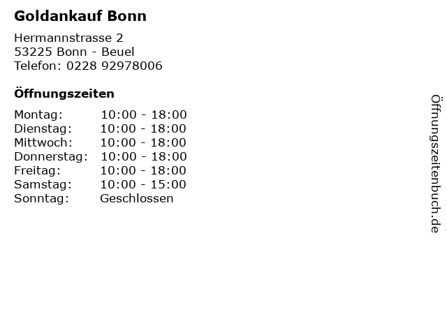 | Öffnungszeiten Goldankauf Bonn in Bonn - Beuel anzeigen | |