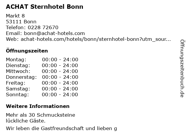 Öffnungszeiten ACHAT Sternhotel Bonn in Bonn anzeigen | |