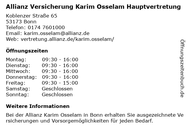 1 Allianz Versicherung Ergün Yalcin Hauptvertretung (Entfernung: 0,00 km) Koblenzer Straße 65, 53173 Bonn 4 AXA Versicherung - Hauptvertretung Elke Klevenhaus (Entfernung: 9,70 km) Siebengebirgsstr. 2B, 53572 Unkel 5 HDI Versicherung - Hauptvertretung Jochen Wendrich (Entfernung: 10,49 km) Nachtigallenweg 10, 53572 Unkel 6 AXA Versicherung - Hauptvertretung Siegfried Thim (Entfernung: 11,81 km) Provinzialstraße 26, 53859 Niederkassel |