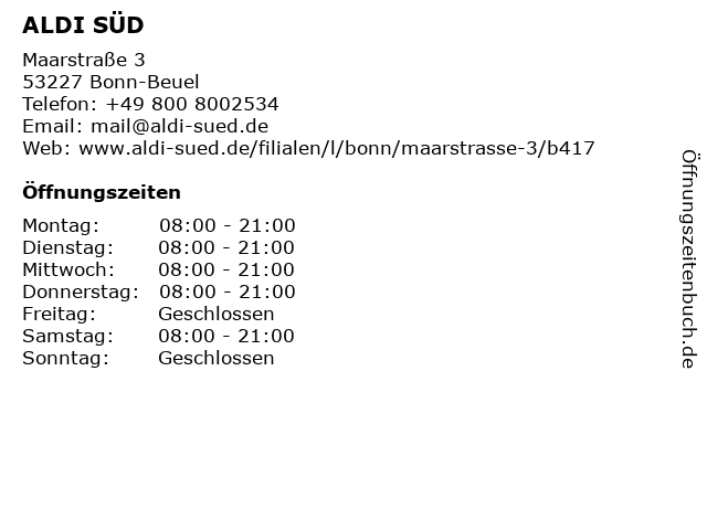 Öffnungszeiten ALDI SÜD in Bonn-Beuel anzeigen