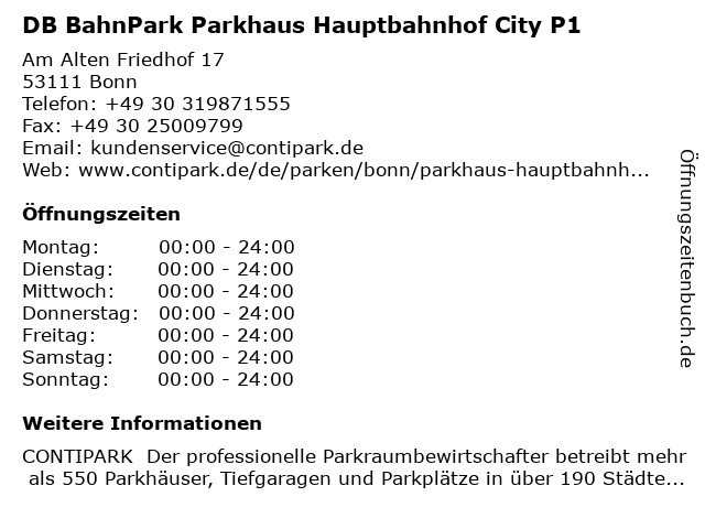 Branchen & Suchbegriffe zu DB BahnPark Parkhaus Hauptbahnhof City P1:24/7, bahnpark, bequem, city, dauerparken, db, günstig, hauptbahnhof, p1, parken, parken bonn, parken hauptbahnhof city p1, parkhaus, parkhaus bonn, zentral |