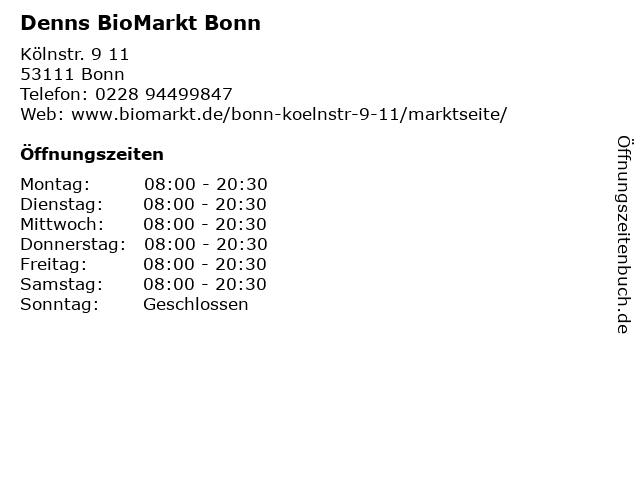 | Öffnungszeiten Denns BioMarkt Bonn in Bonn anzeigen | |