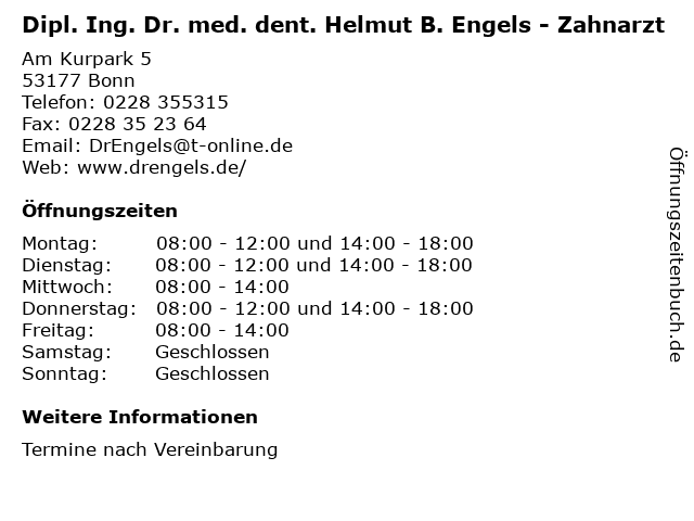 Branchen & Suchbegriffe zu Dipl. Ing. Dr. med. dent. Helmut B. Engels - Zahnarzt:b., dent., dipl., dr., engels, helmut, implantologie, ing., keramik, kiefergelenkvermesssung, laser, laserbehandlung, med., prophylaxe, sprechzeiten, vollkeramik, zahnarzt, zahnersatz, ästhetische zahnheilkunde |