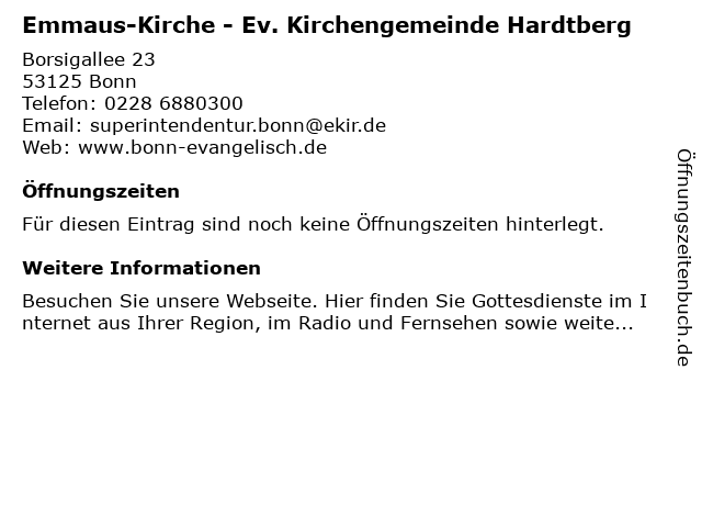 | Emmaus-Kirche - Ev. Kirchengemeinde Hardtberg anrufen | |