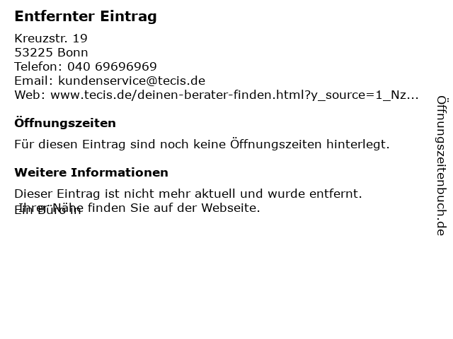 | Öffnungszeiten Entfernter Eintrag in Bonn anzeigen | |
