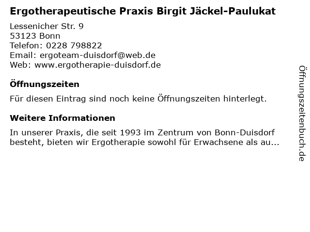 | Ergotherapeutische Praxis Birgit Jäckel-Paulukat anrufen | |