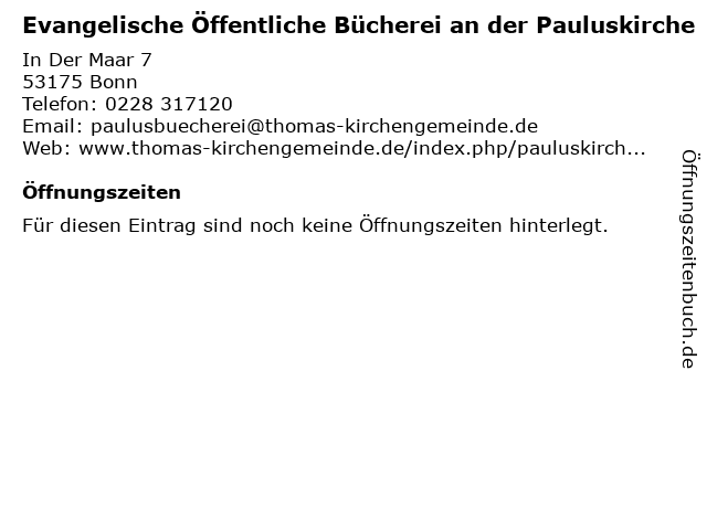 | Evangelische Öffentliche Bücherei an der Pauluskirche anrufen | |