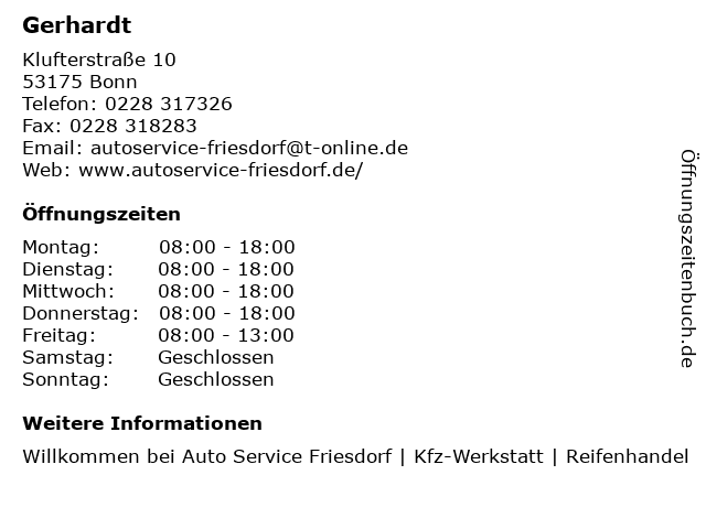 | Öffnungszeiten Gerhardt in Bonn anzeigen | |