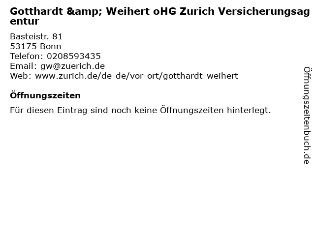 | Gotthardt & Weihert oHG Zurich Versicherungsagentur anrufen | |