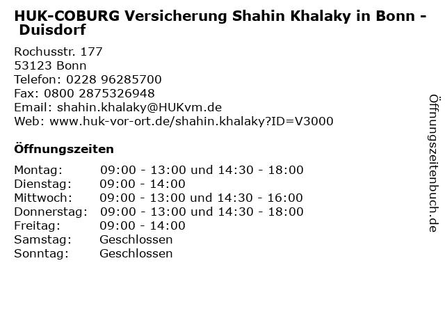 Branchen & Suchbegriffe zu HUK-COBURG Versicherung Shahin Khalaky in Bonn - Duisdorf:altersvorsorge, autoversicherung, berufsunfähigkeitsversicherung, coburg, duisdorf, gebäude- und hausratsversicherung, huk, kfz-versicherung (motorrad), khalaky, shahin, tierversicherung, versicherung, zahnmedizinische versicherung |