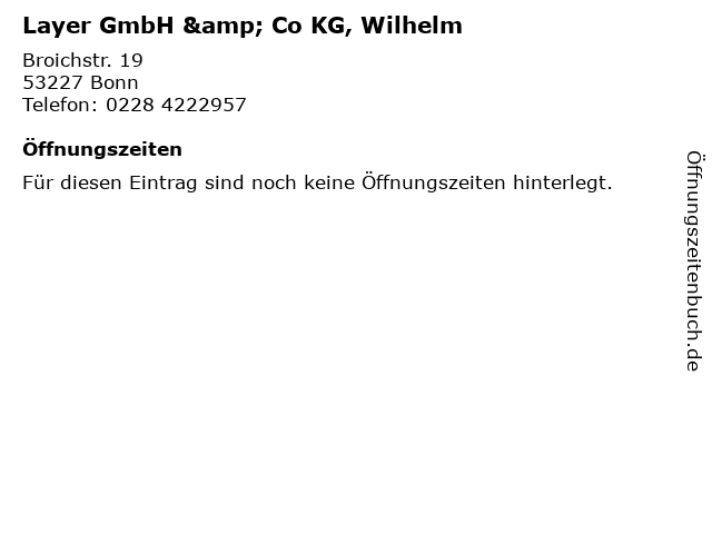 | Öffnungszeiten Layer GmbH & Co KG, Wilhelm in Bonn anzeigen | |