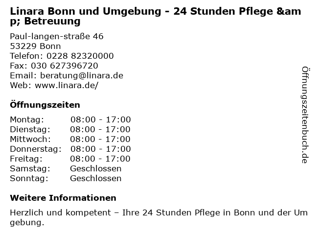 Branchen & Suchbegriffe zu Linara Bonn und Umgebung - 24 Stunden Pflege & Betreuung:24, betreutes wohnen, betreuung, linara, pflege, stunden, umgebung |