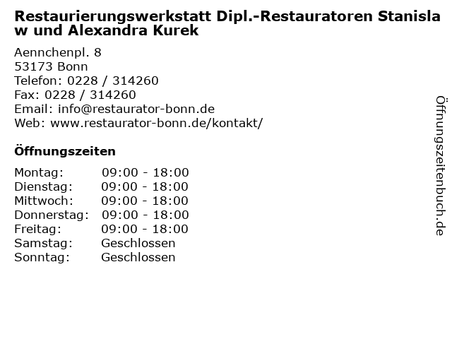 Branchen & Suchbegriffe zu Restaurierungswerkstatt Dipl.-Restauratoren Stanislaw und Alexandra Kurek:alexandra, dipl., kurek, restauratoren, restaurieren, restaurierungswerkstatt, restaurirungswerkstatt, stanislaw |