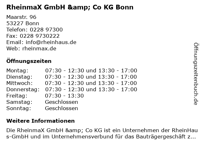 Öffnungszeiten RheinmaX GmbH & Co KG Bonn