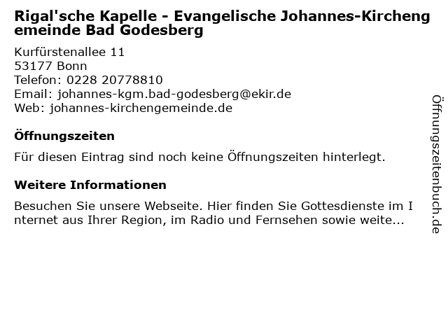 | Rigal'sche Kapelle - Evangelische Johannes-Kirchengemeinde Bad Godesberg anrufen | |