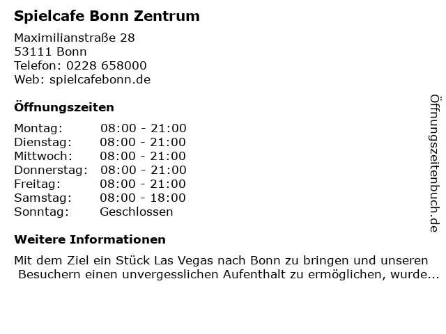 | Öffnungszeiten Spielcafe Bonn Zentrum in Bonn anzeigen | |