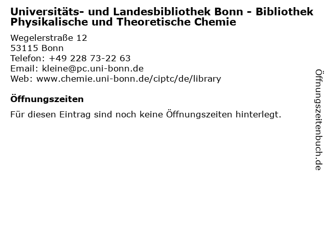 | Universitäts- und Landesbibliothek Bonn - Bibliothek Physikalische und Theoretische Chemie anrufen | |