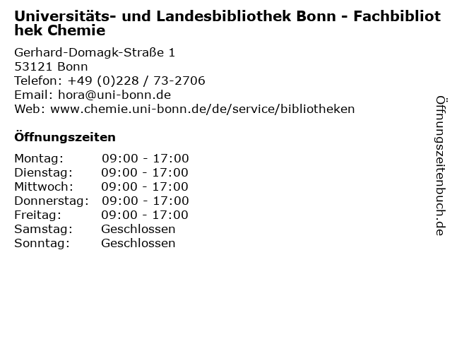 Branchen & Suchbegriffe zu Universitäts- und Landesbibliothek Bonn - Fachbibliothek Chemie:bibliothek, buch, buchscanner, chemie, fachbibliothek, landesbibliothek, literaturen, sprachen, universitäts |