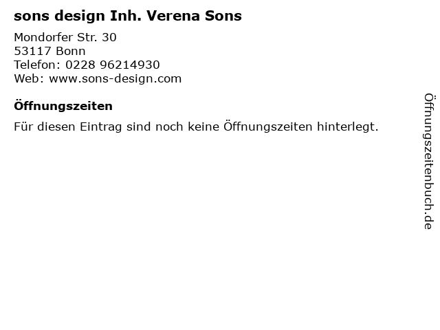 | Öffnungszeiten sons design Inh. Verena Sons in Bonn anzeigen | |