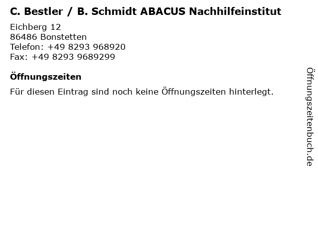 | C. Bestler / B. Schmidt ABACUS Nachhilfeinstitut anrufen | |