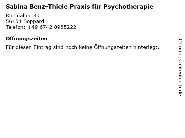 Branchen & Suchbegriffe zu Sabina Benz-Thiele Praxis für Psychotherapie:benz, praxis, psychotherapeut, psychotherapie, sabina, thiele |