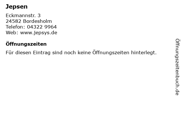 | Öffnungszeiten Jepsen in Bordesholm anzeigen | |