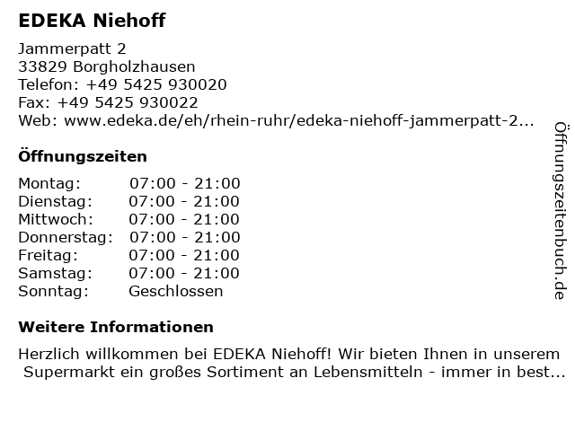 | Öffnungszeiten EDEKA Niehoff in Borgholzhausen anzeigen | |