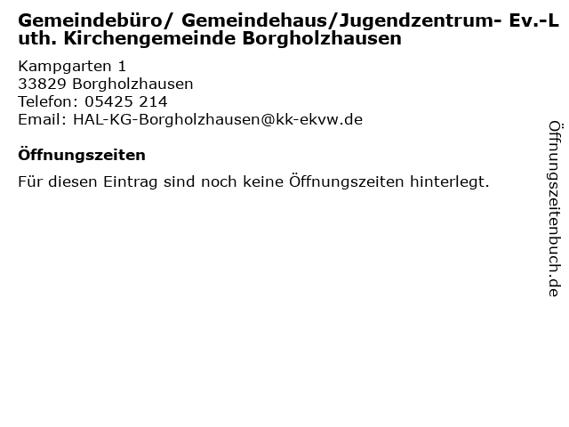 | Gemeindebüro/ Gemeindehaus/Jugendzentrum- Ev.-Luth. Kirchengemeinde Borgholzhausen anrufen | |