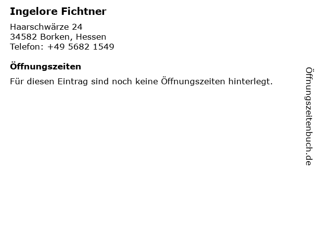 | Öffnungszeiten Ingelore Fichtner in Borken, Hessen anzeigen | |
