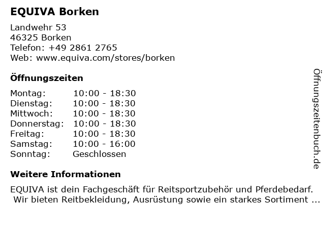 | Öffnungszeiten EQUIVA Borken in Borken anzeigen | |